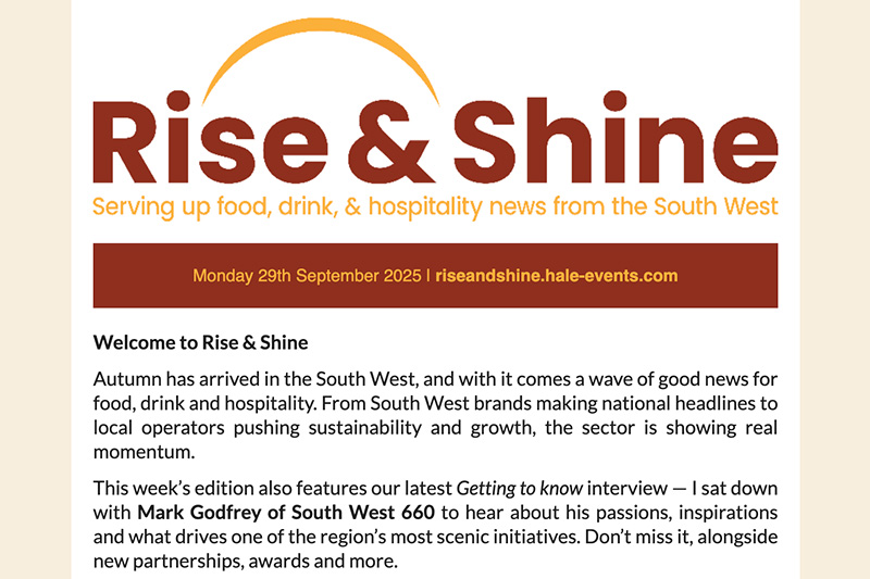 Hospitality news for the South West from Rise & Shine. September 29th 2025
