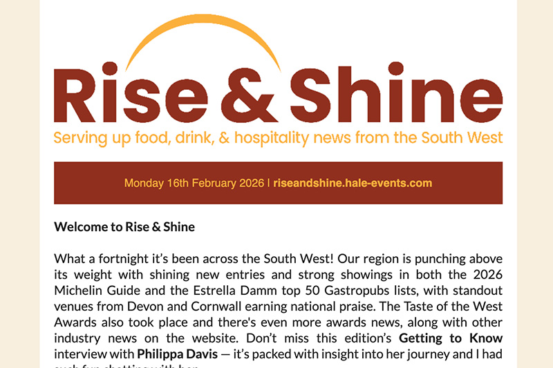 Hospitality news for the South West from Rise & Shine. February 16th 2026
