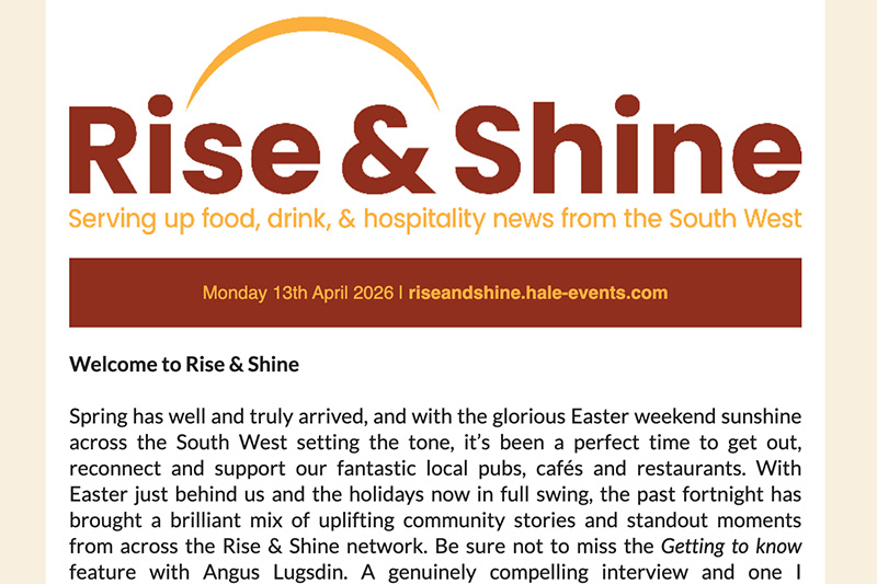 Hospitality news for the South West from Rise & Shine. April 13th 2026
