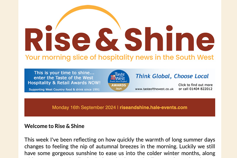 Hospitality news for the South West from Rise & Shine. September 16th 2024