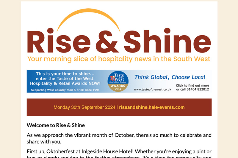 Hospitality news for the South West from Rise & Shine. September 30th 2024