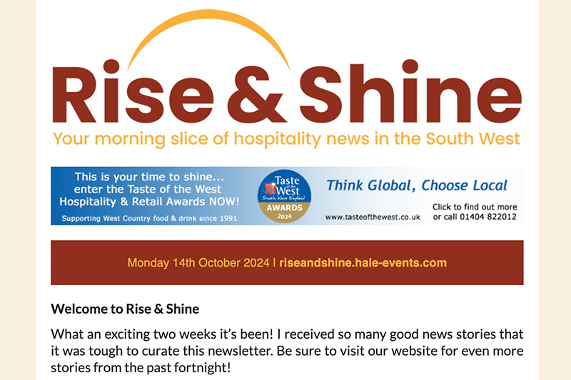 Hospitality news for the South West from Rise & Shine. October 14th 2024