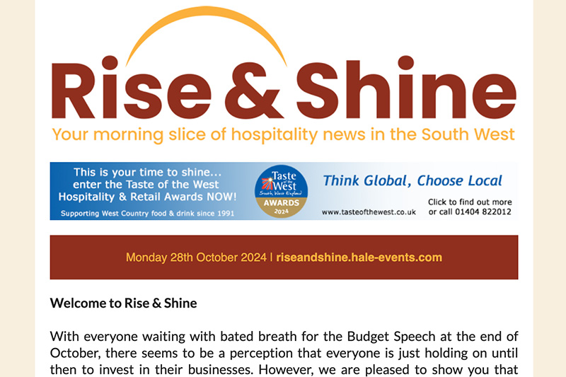 Hospitality news for the South West from Rise & Shine. October 28th 2024